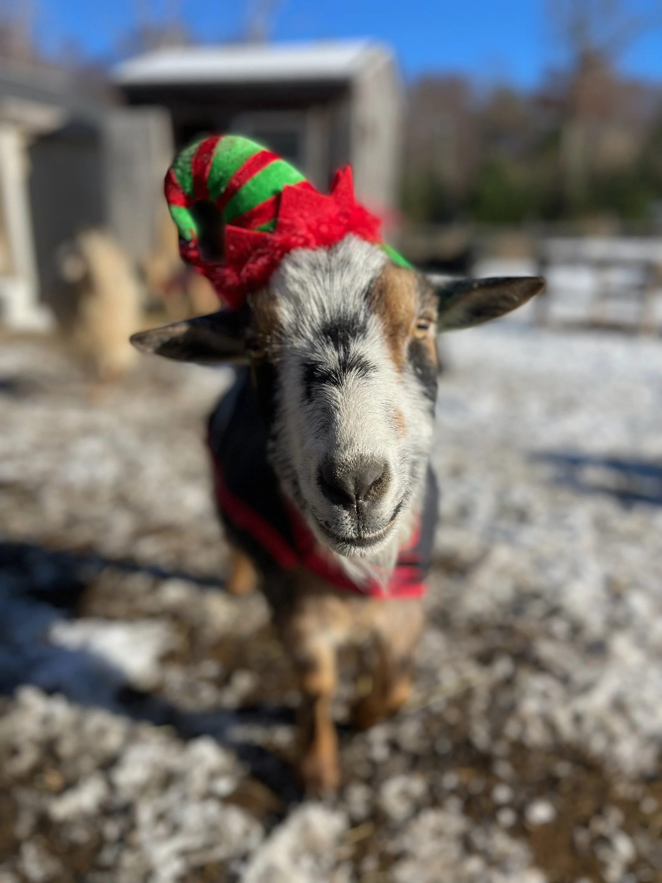 Luke is TRFR's largest goat. He is an Alpine goat and is taller than all of the mini horses! Luke LOVES attention and will give anyone a back rub with his head. He's a gentle, loving giant. Luke would love hay this holiday season!