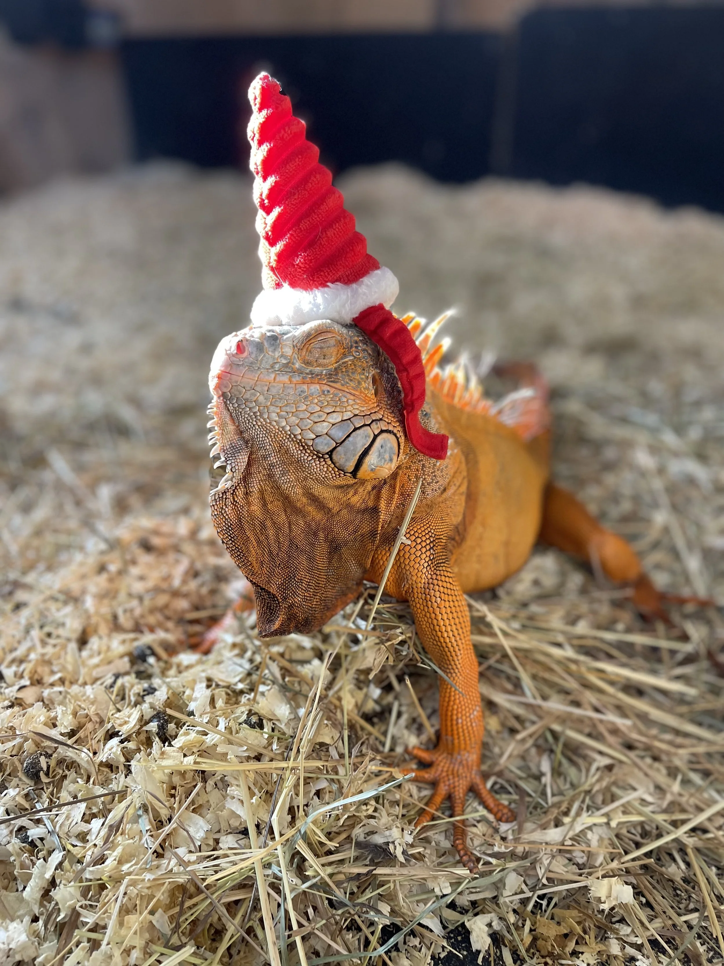 Drogon the red iguana was rescued from a very sad situation. He had grown large, as all iguanas do, and his owner was too afraid to handle him any longer as he was very aggressive. He was kept in a large dog crate with no lighting and no heat so he stopped eating. When he arrived at TRFR, he was as thin as a snake! He was constipated and had many health issues. He has come so far and is much more relaxed! Please send some of Drogon’s favorite food, romaine lettuce!