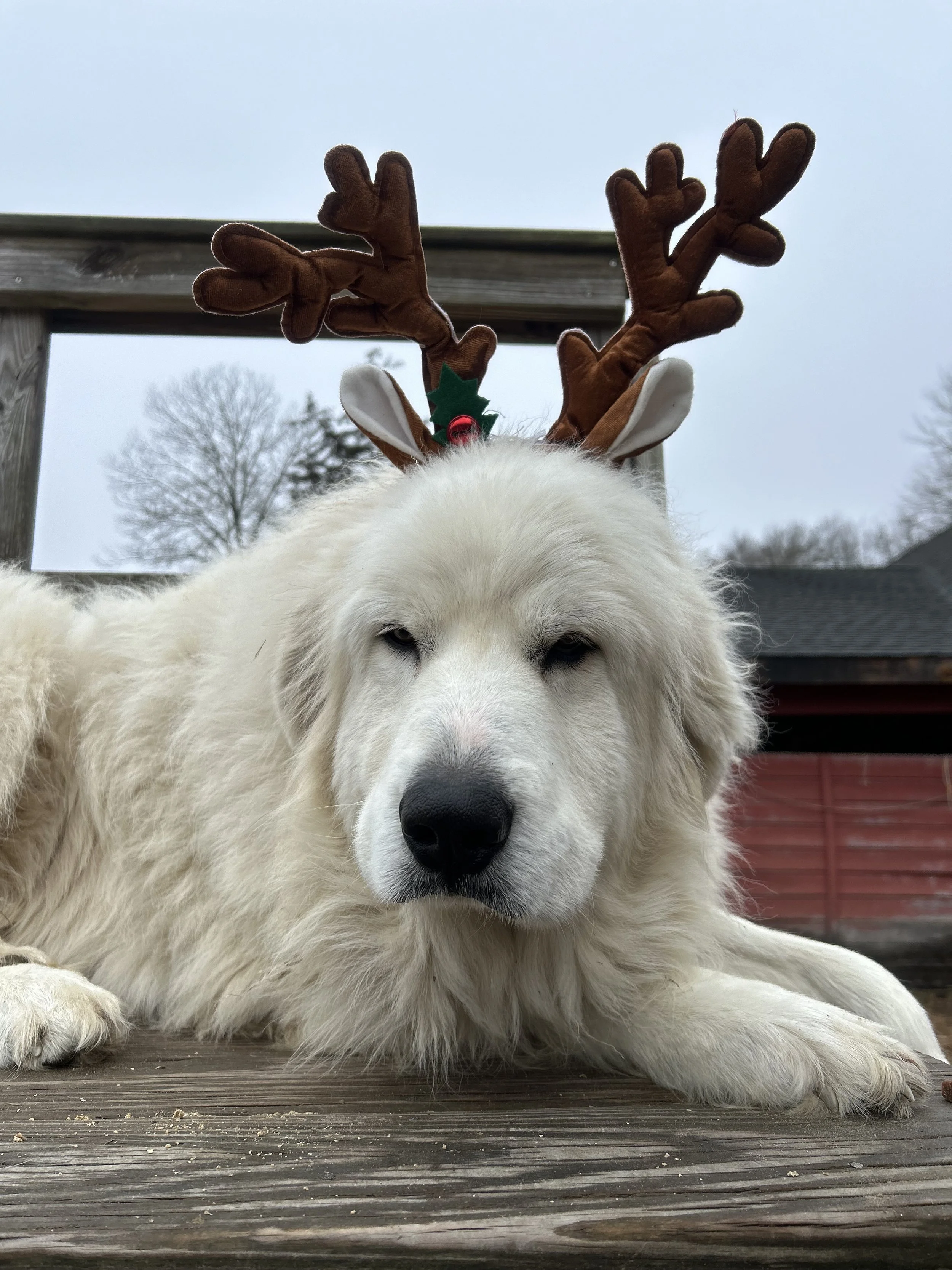 Gabriella, one of our Great Pyrenees, loves snuggles and hugs! She lives with her brother, Evander, and our 3 steer. Gabriella would love some snacks to share with her brother!