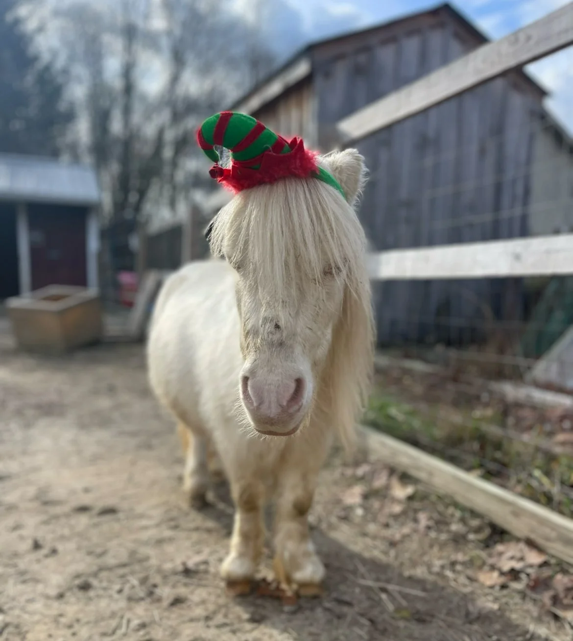 Harold, one of our very affectionate mini horses, loves to eat! He was tossed aside at a horse auction alone with his face up against the wall. He is the sweetest boy and absolutely loves hugs! Please send this boy a bale of hay as his winter treat!