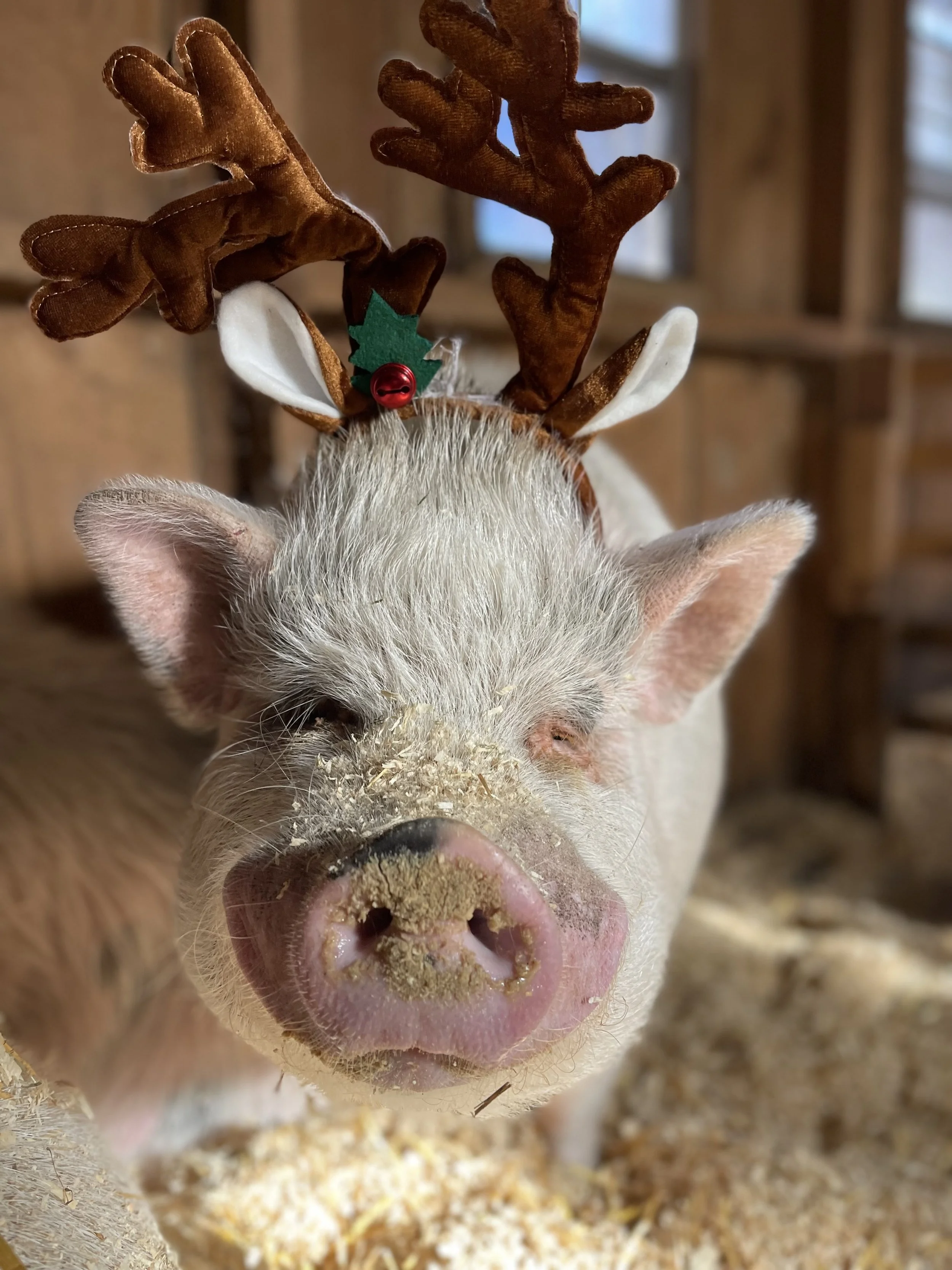 Pinocchio the pot belly pig was born at TRFR. His mother Elizabeth was rescued from a hoarding case in North Carolina. Thankfully, Pinocchiohas never experienced neglect. He’s only known love and respect and SNACKS! Pinocchio would love some special snacks this holiday season to share with his family!