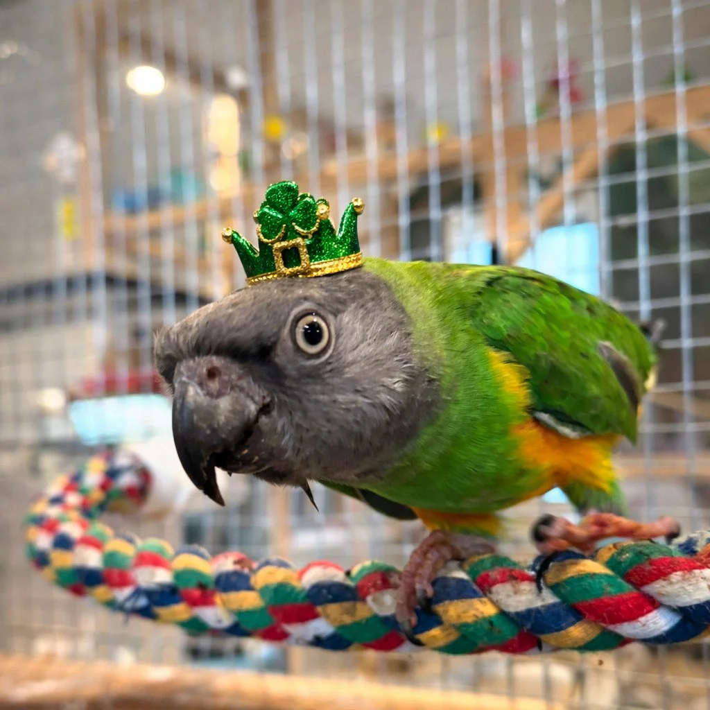 Greta is a spirited and chatty Senegal parrot who keeps everyone smiling in our Small Animal Center 🦜💚